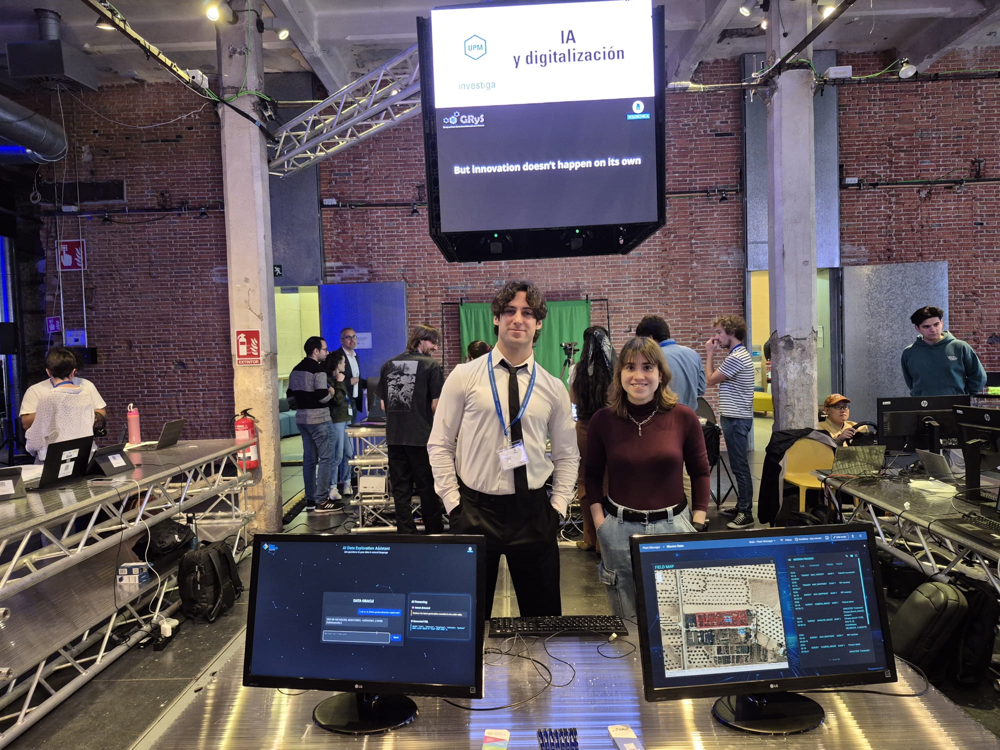 GRyS had an assigned space within the “AI and digitalization” booth. The group showcased its latest advancements in the field, focusing on the development of intelligent systems for autonomous fleets and AI-powered tools for secure data querying. Among the technologies demonstrated were: